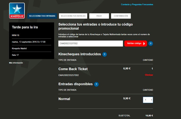 ¿Cómo canjear tu código promocional en kinepolis.es?