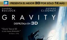 Por sólo un euro más del precio de una entrada normal podrás adquirir tu entrada en 3D para ver “Gravity”, una asombrosa película protagonizada por George Clooney y Sandra Bullock, que te hará sentir que flotas en el espacio.