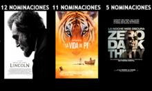 "Lincoln" es la gran favorita con 12 nominaciones, una más que "La vida de Pi", de Ang Lee. Les siguen "El lado bueno de las cosas" (8), "Los miserables" (7), "Argo" (7) y "Django desencadenado" (5), "La noche más oscura" (5) y "Amor" (5).