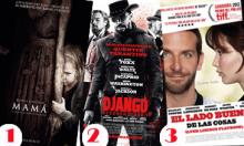 Entre las películas mejor valoradas, sigue imparable desde su estreno "Django Desencadenado", seguida de "Los Miserables" y el estreno de esta semana con Sean Penn como rey de la mafia "Gangster Squad".