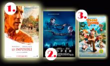 En cuanto a las películas mejor valoradas, "Lo Imposible" también se queda con el primer puesto, "Venganza: Conexión Estambul" y "Frankenweenie" ocupan el segundo y tercer puesto de la valoración.