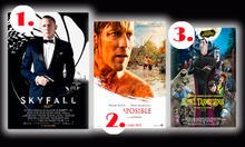 En lo más alto de la taquilla se ha colocado "Skyfall", seguida por una producción nacional, "Lo Imposible" y en el tercer puesto "Hotel Transilvania".