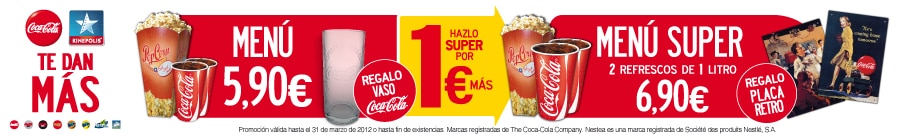 Promoción válida hasta el 31 de marzo de 2012 o hasta agotar existencias. Sólo válida en Kinépolis Granada.